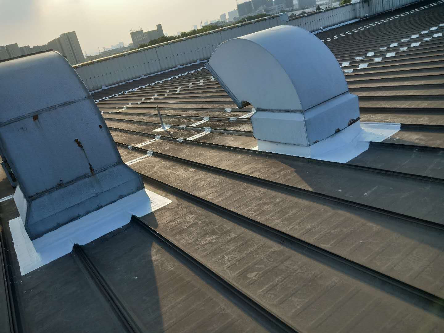 位于無錫新區(qū)長江南路上的通用電氣醫(yī)療系統(tǒng)(中國)有限公司,專業(yè)生產(chǎn)高檔醫(yī)療設(shè)備,其鋼結(jié)構(gòu)屋面在正常使用10年后,經(jīng)行業(yè)內(nèi)客戶轉(zhuǎn)介紹,選用美莎金屬屋面防水體系,于2010年4月,對于屋面上的屋脊、通風器基座、屋面板接頭、天溝、山墻泛水等處,進行系統(tǒng)防水維護。