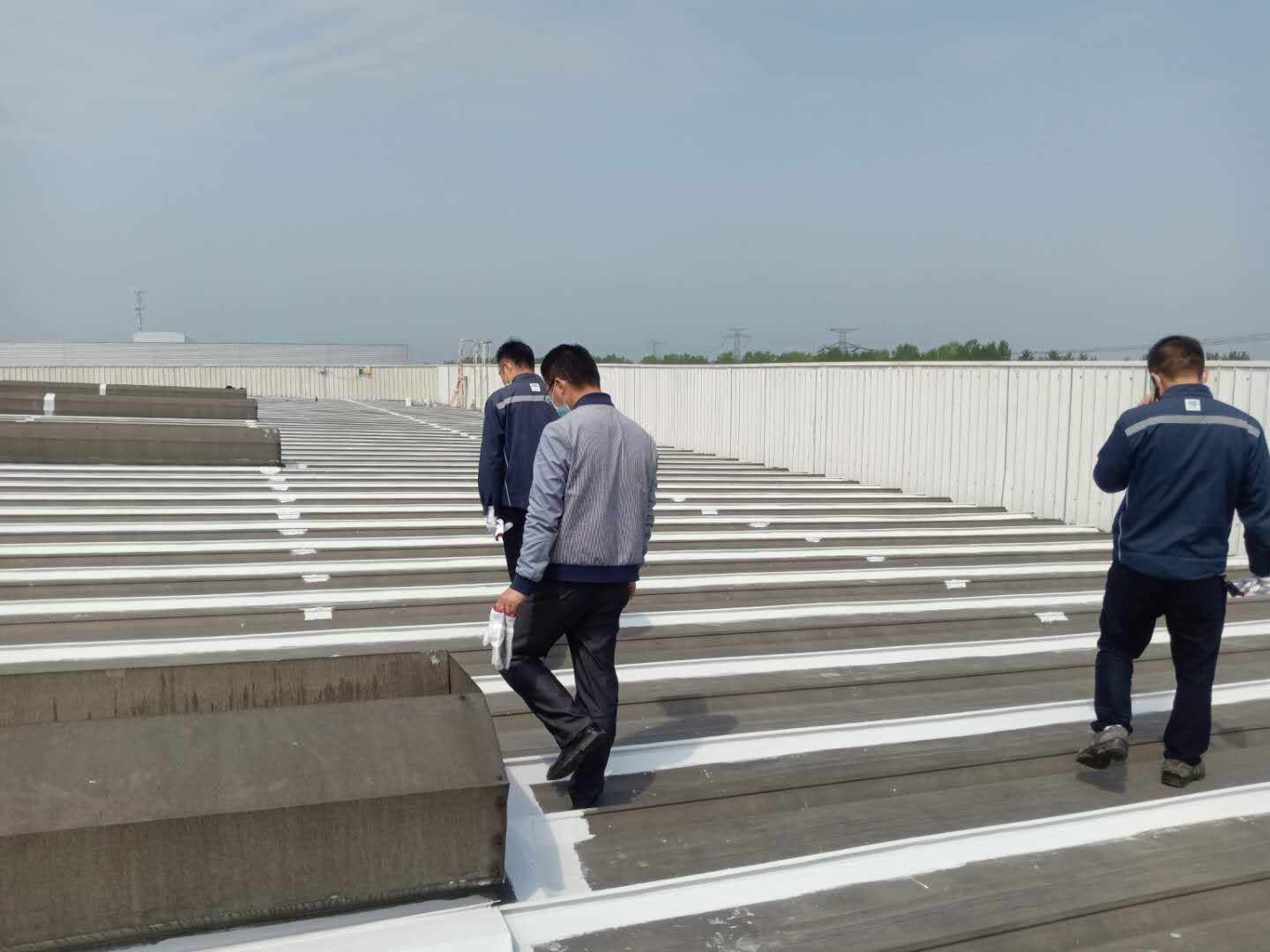 2020年公司決定對屋面進行定期維護保養(yǎng);趯γ郎浪a(chǎn)品質(zhì)量,以及專業(yè)服務(wù)的考慮,還是繼續(xù)讓美莎防水/上海榮拓實業(yè)來維護施工。對于屋面上有缺陷的部位重新進行防腐+防水維護,對于之前做過的36500米搭接縫,無需清除掉,只需重新再刷2遍美莎防水面涂即可。這樣就又能質(zhì)保7年,延續(xù)了良好的使用狀況。