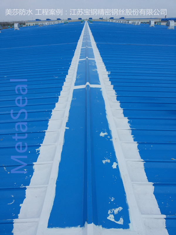 位于南通市海門(mén)開(kāi)發(fā)區(qū),由上海十三冶承建的江蘇寶鋼精密鋼絲有限公司,新建的鋼結(jié)構(gòu)標(biāo)準(zhǔn)廠房,總建筑面積44000平方米。項(xiàng)目驗(yàn)收前期,屋面發(fā)現(xiàn)較多滲漏水點(diǎn),安裝公司用硅膠進(jìn)行修補(bǔ),可沒(méi)過(guò)2個(gè)月就發(fā)現(xiàn)了很多新老漏點(diǎn)。經(jīng)總工程師推薦,使用美莎金屬屋面防水體系,對(duì)于易滲漏水點(diǎn)較多的屋脊、通風(fēng)器基座、排風(fēng)設(shè)備基座、泛水收邊、伸縮縫等處,系統(tǒng)地防水維護(hù),效果明顯。至今好幾年了,客戶(hù)反饋良好。