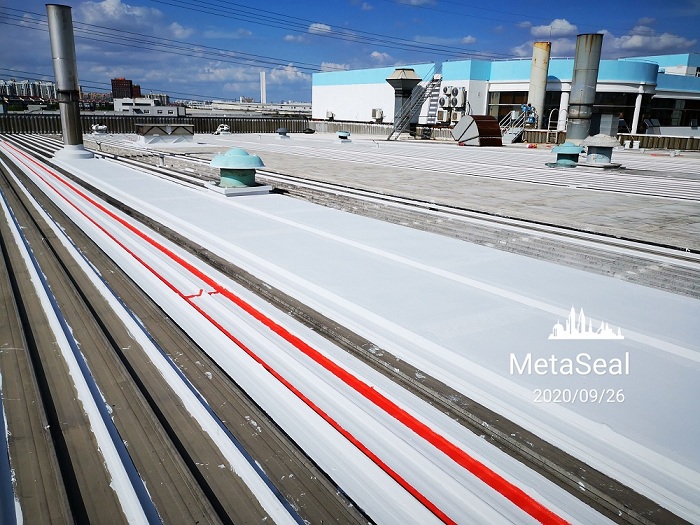 由于之前都是局部防水,2020年6-7月期間,屋面其他未做過防水的區(qū)域,有出現(xiàn)不同程度的滲漏水,導(dǎo)致油漆線車間機器停產(chǎn)的情況。為了徹底解決滲漏水問題,2020年8月份,油漆線車間,進行了整體防水維護(每條搭接縫、每個風(fēng)機、采光板等),確保屋面長治久安,無漏水后顧之憂。
