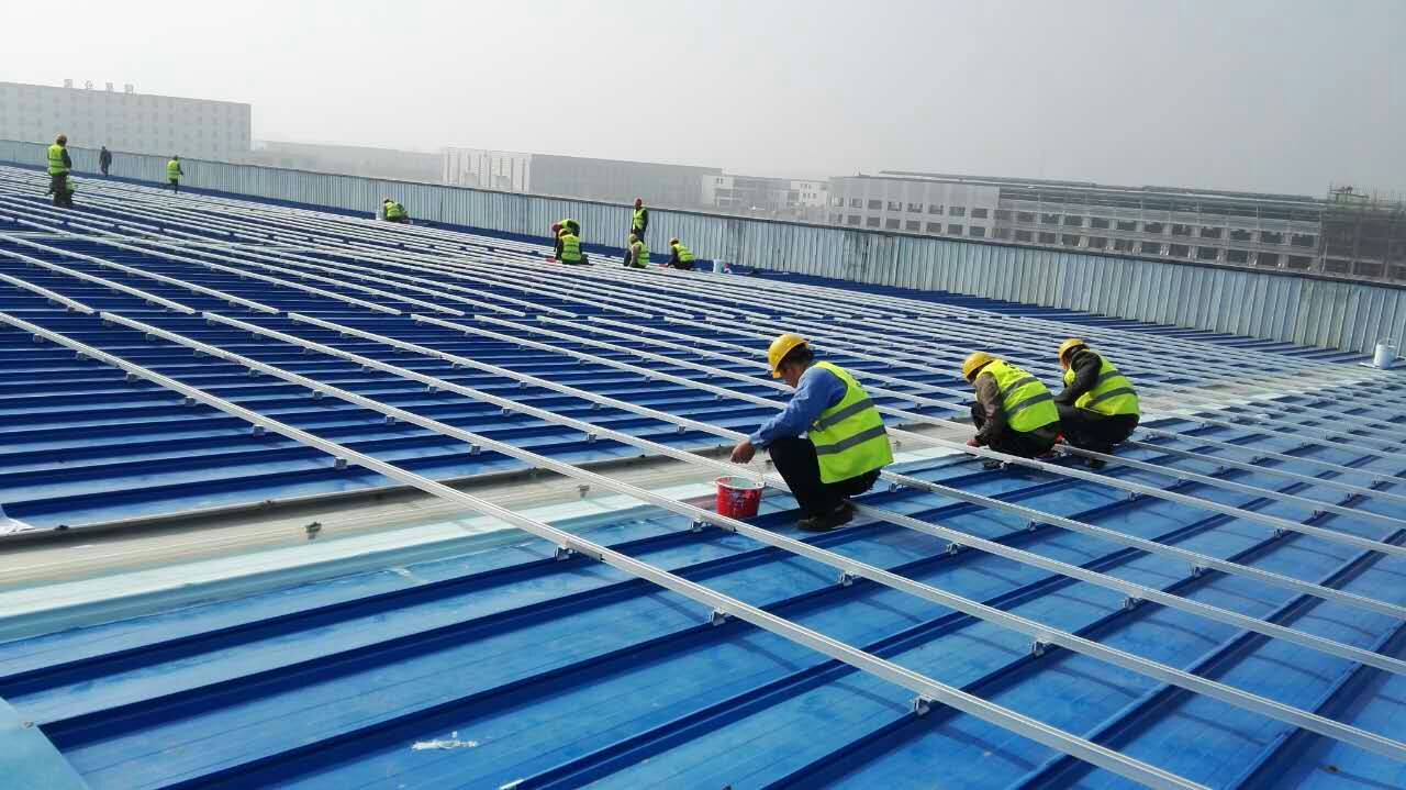 河北陸星汽車制造有限公司,多棟廠房鋼結(jié)構(gòu)屋面(共8萬平方米)計劃安裝光伏板發(fā)電。眾所周知,彩鋼屋面很容易滲漏水,而光伏板安裝后,一般情況下十多年期間是不會再移動的。因此,為了安全起見,業(yè)主采用美莎金屬屋面防水體系,對于屋脊及采光帶區(qū)域進(jìn)行整體防水覆蓋,確保15年內(nèi)房屋無滲漏水隱患。