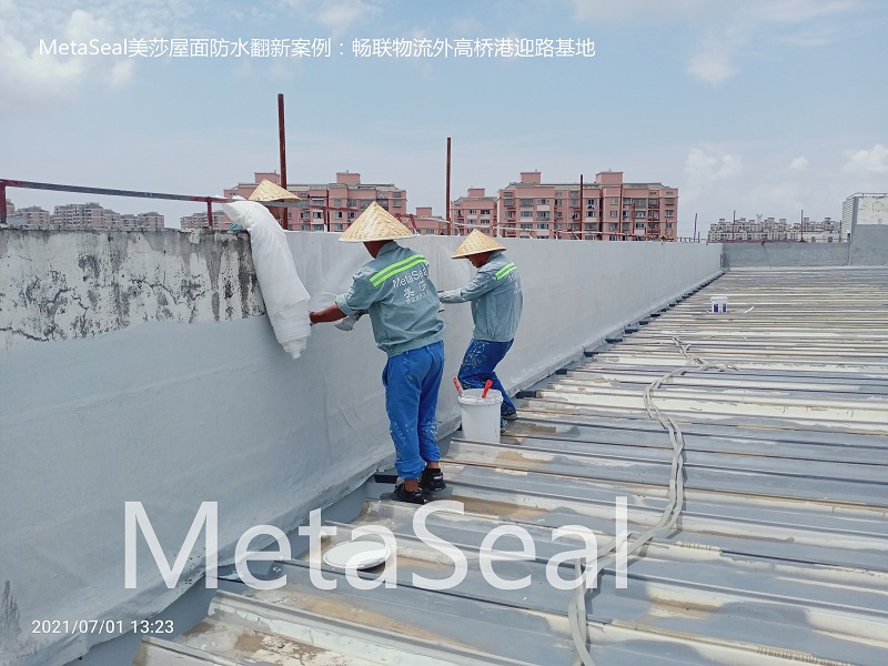 2018年,位于港迎路上的物流基地,2#樓也存在較多滲漏水問題,15000平方米彩鋼物流,采用美莎金屬屋面防水體系,將屋面上所有的搭接縫、釘子、SBS瀝青卷材覆蓋面積(無法鏟除)進行系統(tǒng)防水維護,經(jīng)過幾次臺風暴雨的檢驗,滴水不漏,租戶和業(yè)主都很滿意。