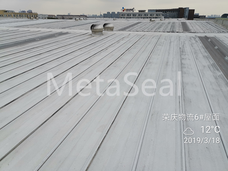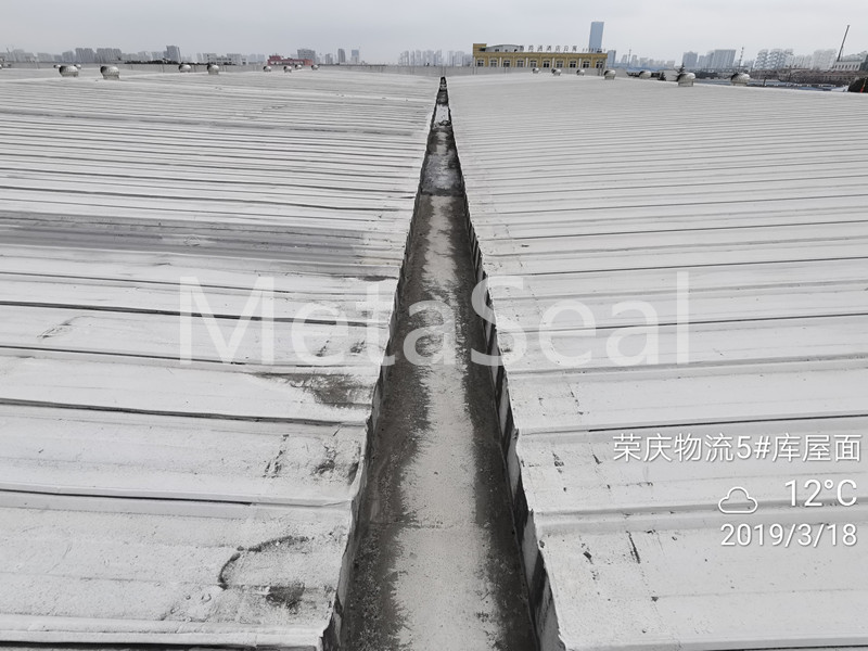 位于上海市嘉定區(qū)馬陸工業(yè)園區(qū)的榮慶物流基地5-6#庫,兩棟舊倉庫改建的冷鏈庫,共11000平方米,普通角弛型彩涂板屋面結(jié)構(gòu)。維護(hù)前漏水問題嚴(yán)重,對于存放大量高價值貨物的業(yè)主而言是無法接受的。