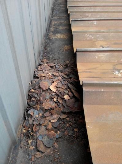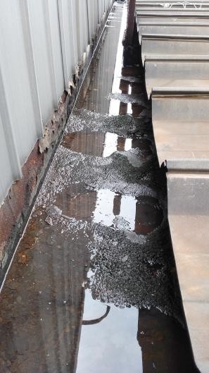蘇州巨能發(fā)電配套設(shè)備有限公司的鋼結(jié)構(gòu)屋面,共計24000平方米,分高中低三跨屋面,至今已有10年多時間,由于生產(chǎn)車間常年排放的廢氣及粉塵,含有化學(xué)腐蝕作用,導(dǎo)致屋面天溝區(qū)域內(nèi)腐蝕嚴重,且大量堆積了淤泥垃圾,細鐵砂等物質(zhì),這幾年已出現(xiàn)多處滲漏水情況,對生產(chǎn)車間造成安全隱患(如配電箱/焊接設(shè)備/成品等)。