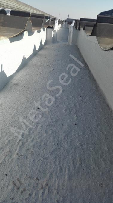 (4)天溝內(nèi)區(qū)域采用MetaSeal美莎金屬屋面防水體系進行整鋪防水,“一布三涂”標準工法。檐口板上的釘子同時也進行防水加固維護處理。