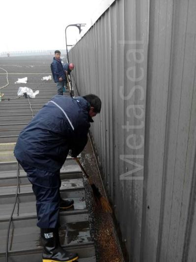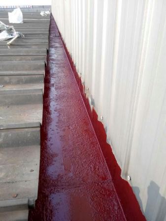 (1)天溝內(nèi)初步清除掉銹塊、沉沙及各類垃圾,晾干后銹塊敲除,然后進行打磨除銹,及時涂上鋼結(jié)構(gòu)專用的防腐油漆;
