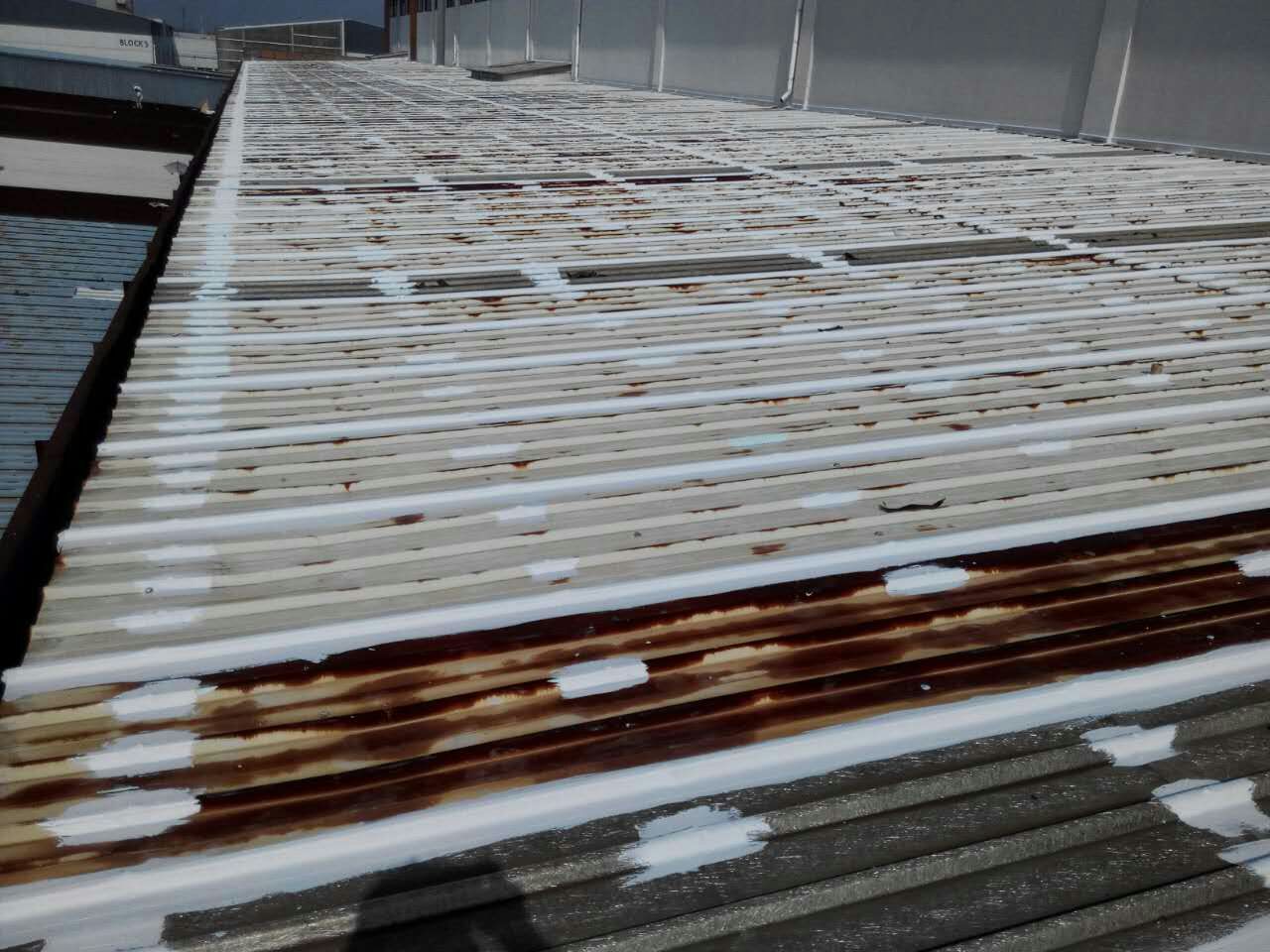 我們常用的彩鋼棚屋面(壓型鋼板或彩鋼夾心板),是一張張彩涂鋼板或鍍鋅鋼板,用機器壓成不同型號的屋面板,然后用自動鎖邊機器,360度咬合在一起,通常,這些直立鎖縫是根本不會漏水的,而漏水部位通常是在屋面板與采光板之間的搭接,屋脊板搭接、通風(fēng)器/煙囪等后開孔部位、釘子等易滲漏水部位。若采用傳統(tǒng)的SBS瀝青防水卷材,不僅總費用成本高,根本無法密封和貼緊屋面板及采光板,2-3年后就會開裂滲漏水,且沒處修補(水會到處竄)。若再整體做卷材,成本更高。