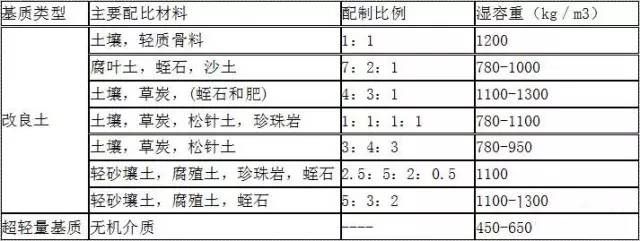 屋頂防水綠化基質(zhì)荷重應(yīng)根據(jù)濕容重進(jìn)行核算,不應(yīng)超過1300 kg/m⊃3;。常用的基質(zhì)類型和配制比例參見表3,可在建筑荷載和基質(zhì)荷重許可的范圍內(nèi),根據(jù)現(xiàn)實(shí)酌情配比。