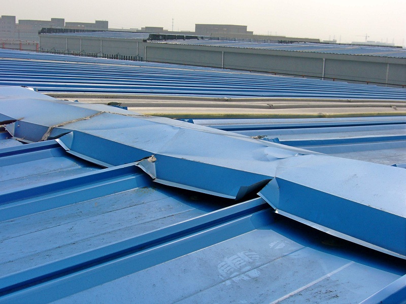該公司為物流行業(yè)中的知名企業(yè),當時屋面板安裝環(huán)節(jié)做得較差,導致搭接縫隙過大,下雨時到處是滲漏水,對于正常的儲運造成嚴重困擾。