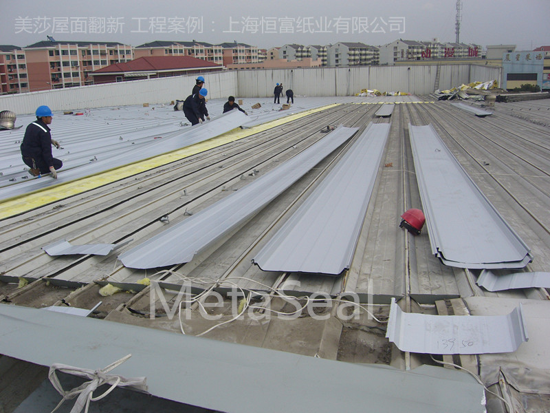 (5)鋼結(jié)構(gòu)屋面防水翻新中,采光板與屋面板連接處假如施工時(shí)不仔細(xì),采光板的外觀有玻璃紙,打膠的時(shí)候打在玻璃紙上面熱漲冷縮后玻璃紙脫落玻璃膠沒有了任何作用,導(dǎo)致漏水。